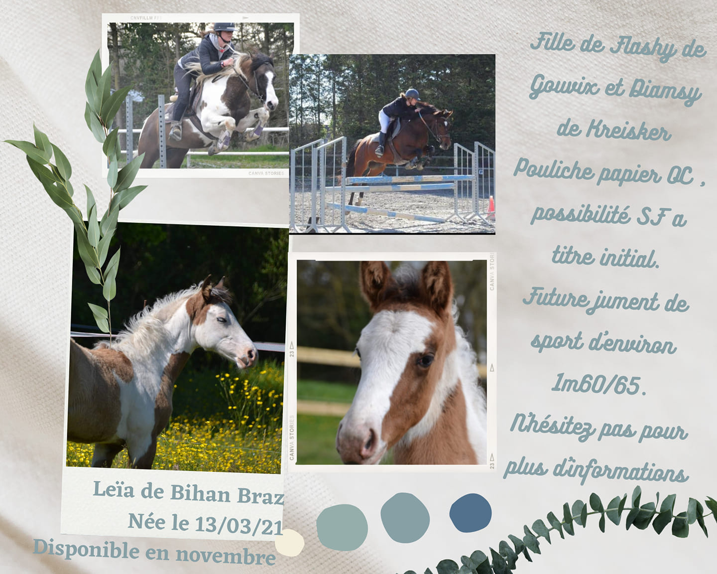 Les parents de Leïa ont tous les deux des qualités de chevaux travailleurs et polyvalents, les origines prestigieuses de la maman vous assureront à coup sûr une jument de qualité pour un avenir sportif.