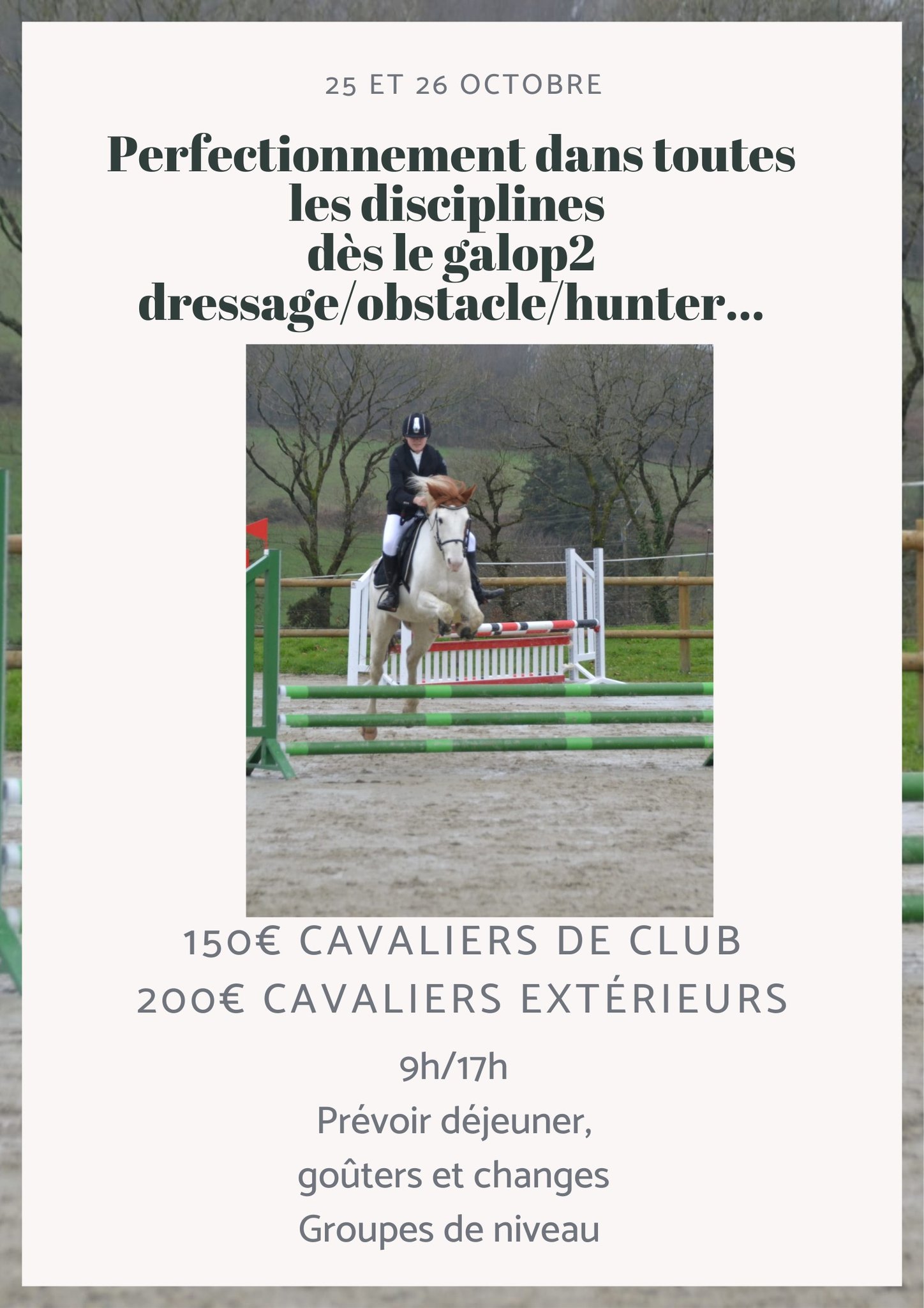 Autonomie en dehors des besoins du club sous la responsabilité d'un parent pour les mineurs. Être minimum autonome pour aller chercher le cheval au pré et le préparer seul correctement.