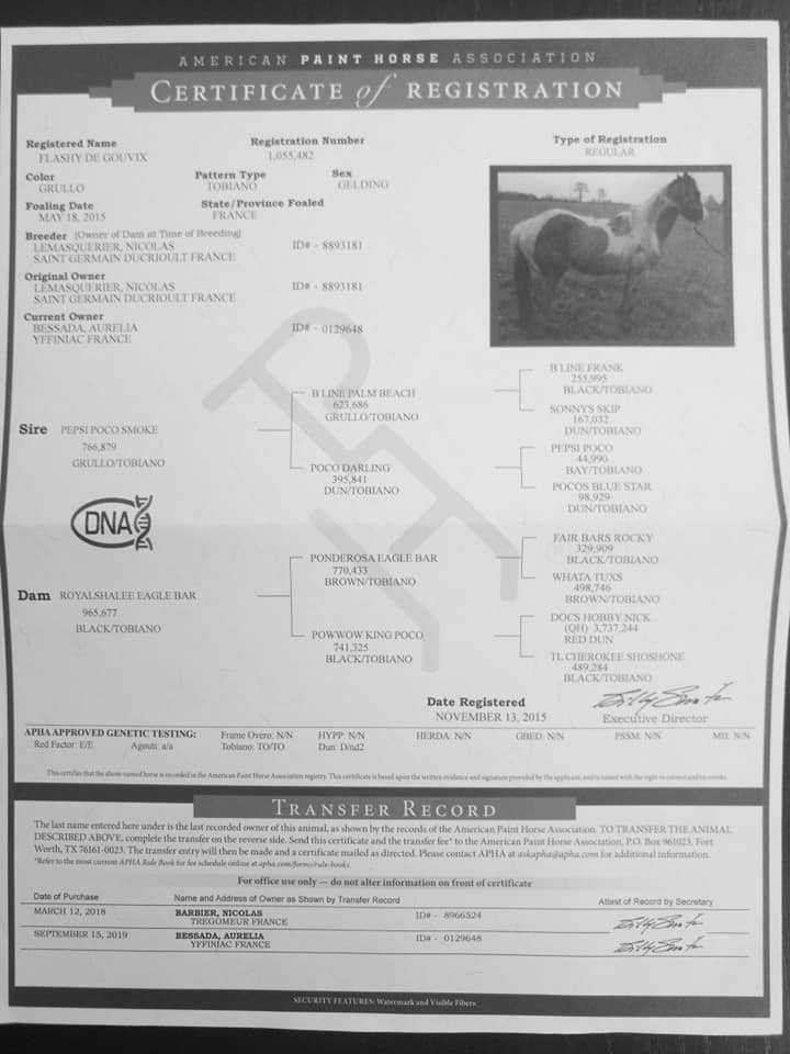 Flashy de Gouvix, étalon Paint Horse plein papier, approuvé.